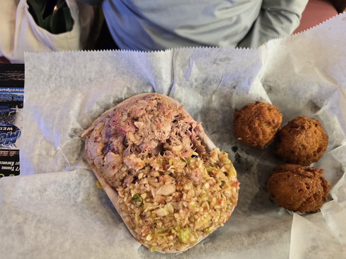 This is the quintessential Southern BBQ place! I had seen some not great reviews recently, but our experience was very positive. The atmosphere was friendly and staff interacted with locals as you might see on an episode of Andy Griffith! Nicely nostalgic...In so many places these days, the staff seems annoyed to even be there. This felt different. We went on a Saturday for lunch. We did the family meal of sliced bbq and definitely had enough for 4 total plates, maybe even more. The 'pups' were a great texture, the sauces were on the table and not drowning the meat. The white slaw was crunchy and not too sweet and the beans actually had bacon in them! The homemade ranch dressing is a must. The portions are generous, and our server was very attentive and nice. We'll definitely be back