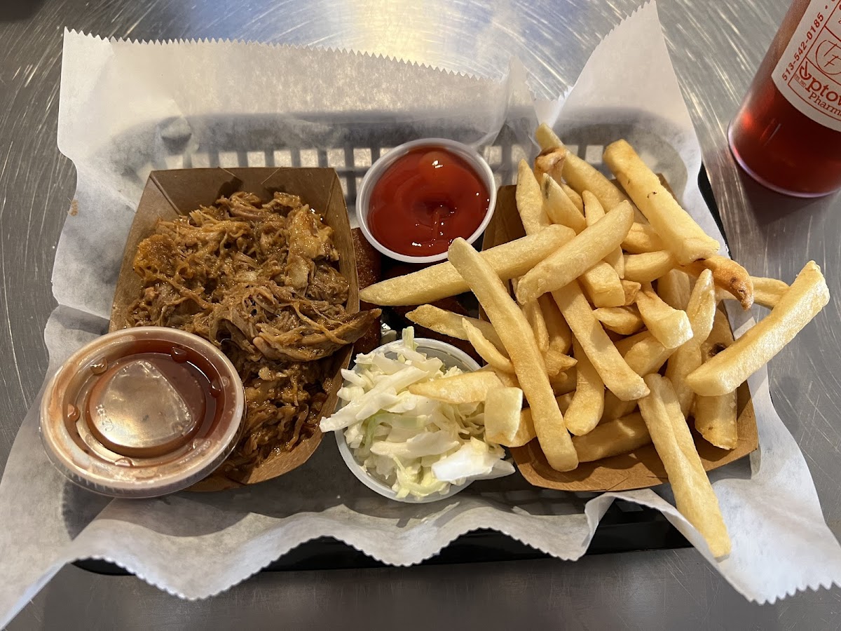 Great spot for BBQ and other yummy sounding plates. First time here while I was visiting Eden for work. Staff were friendly. They got busy at lunch. Homemade ranch dressing (always good to know those places!). BBQ was good, hush puppies delicious and sweet, and good white slaw. Fries were ok just needed salt. Awesome sweet tea. I would love to try their other plates.
